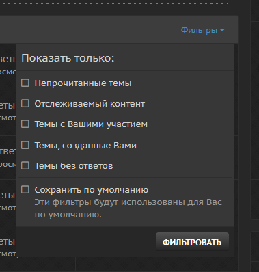 Обратите внимание, что у него есть настройки фильтрации и по умолчанию показываются только непрочитанные. Это настраивается и сохраняется: