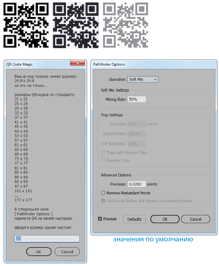 2. QR составная часть растрового изображения - обвести "рамочкой" (любой формы замкнутый контур) участок внутри которого будет только QR и белое поле. Не снимая выделения с контура запустить скрипт.