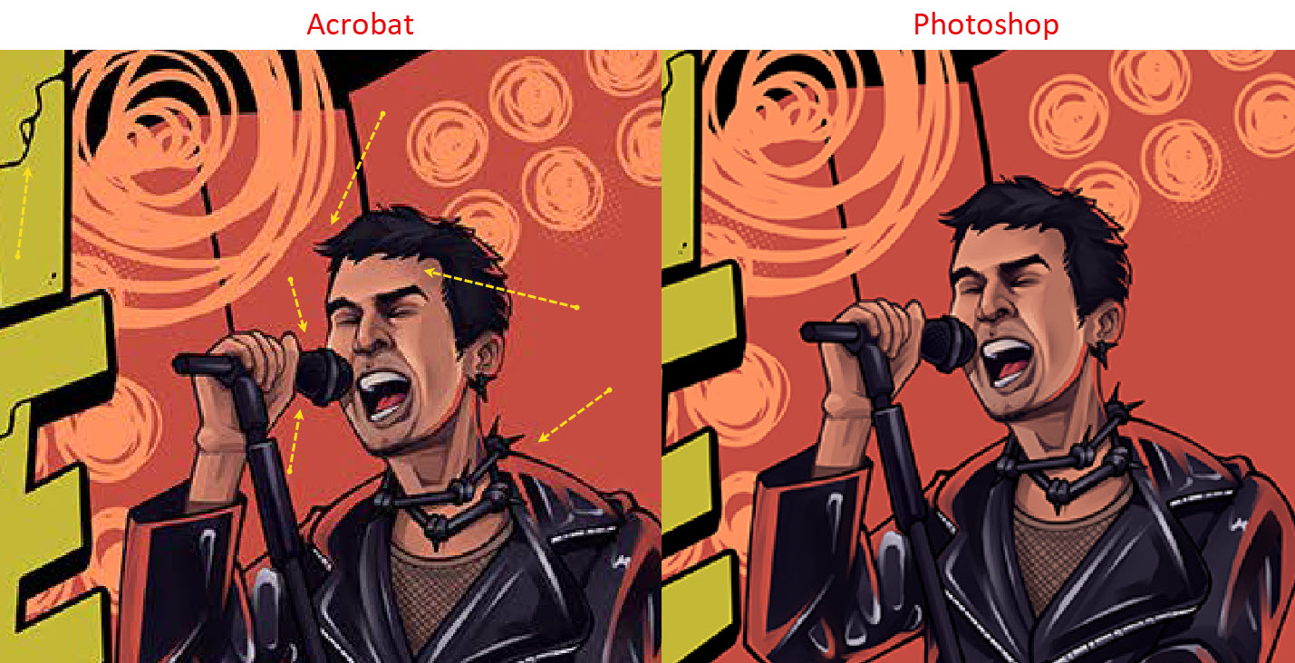Открываешь файл в Acrobat - пережато. Открываешь в любом вьюере, фотошопе - артефактов нет.