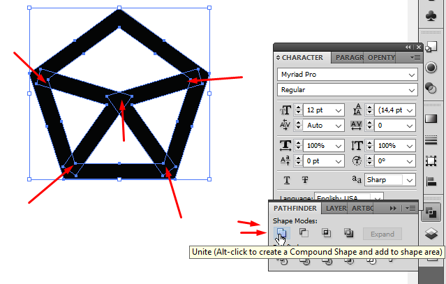 Expand в том же меню только выше. Но "преобразовать в кривые" (как у вас) делает то же самое. Потом объединить