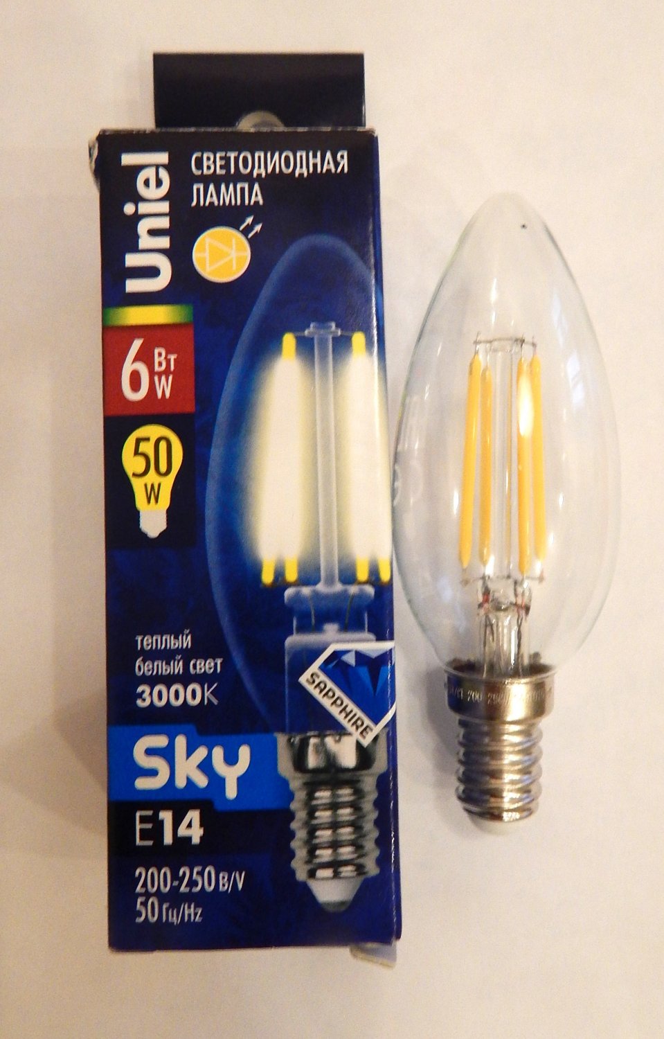 Потом купил одну "по случаю" в настольную лампу. В местном магазинчике (что характерно - у знакомых, посоветовали именно эту марку). Проработала месяца три и сдохла. Точнее, не сдохла, а светить стала как ей хочется и когда ей хочется - то тускло, то нормально - логики и закономерности в ее работе не нашел.