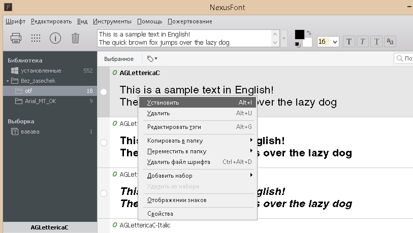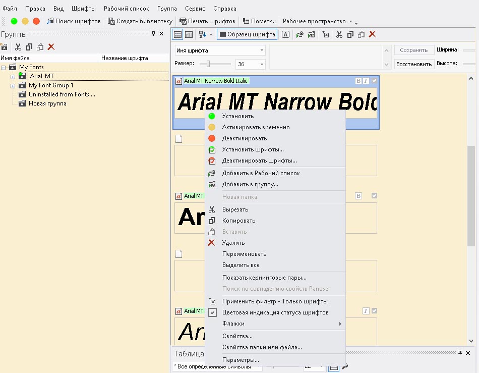 Где "там"? Я писал про апплет Windows, он же папка "шрифты", групп там вроде нет, добавить/удалить как любой файл в проводнике. Или вы про Fontbase?А как там добавить-удалить шрифт или группу?