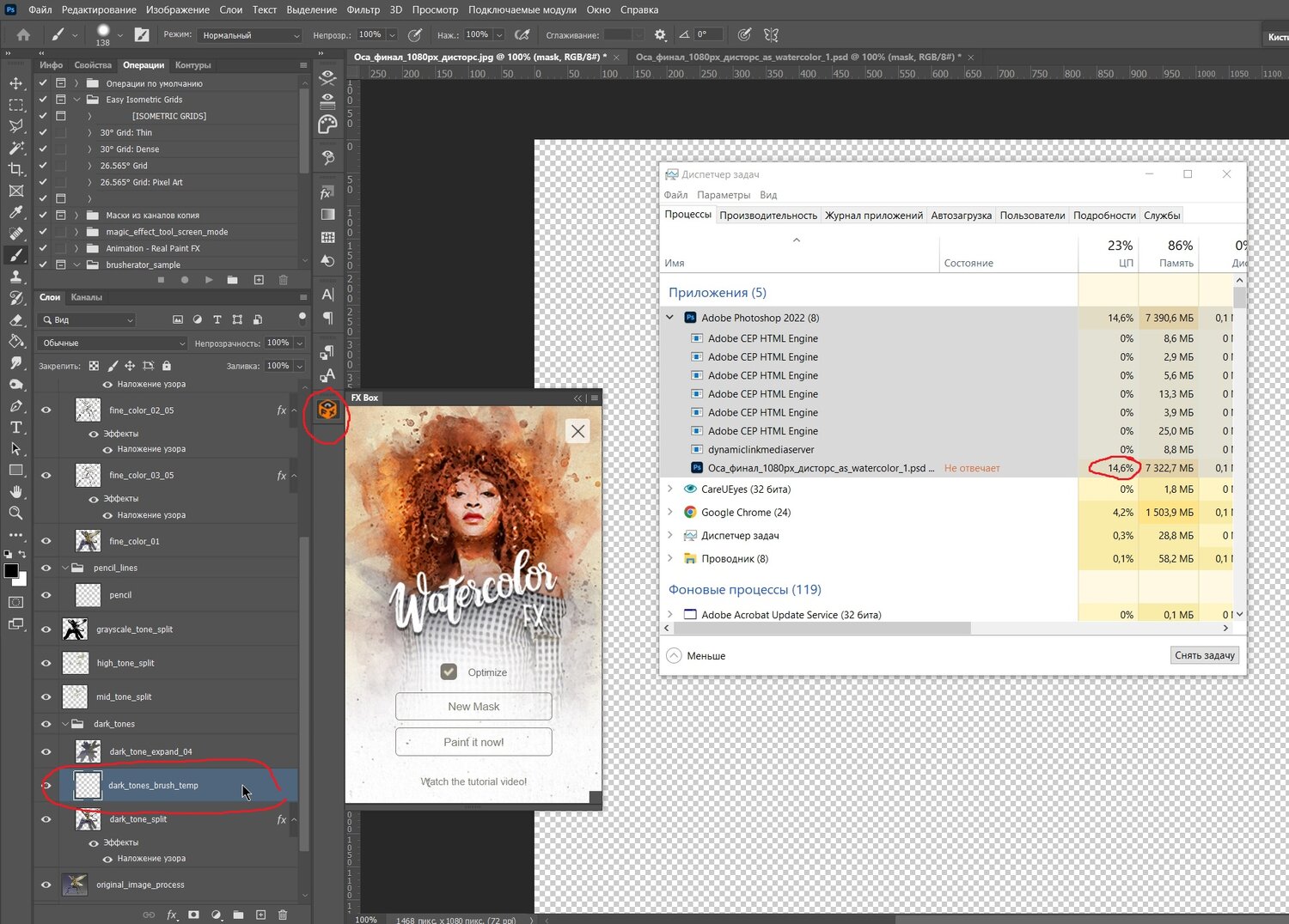 Так вот один из них, Watercolor FX ни в какую не срабатывает успешно.