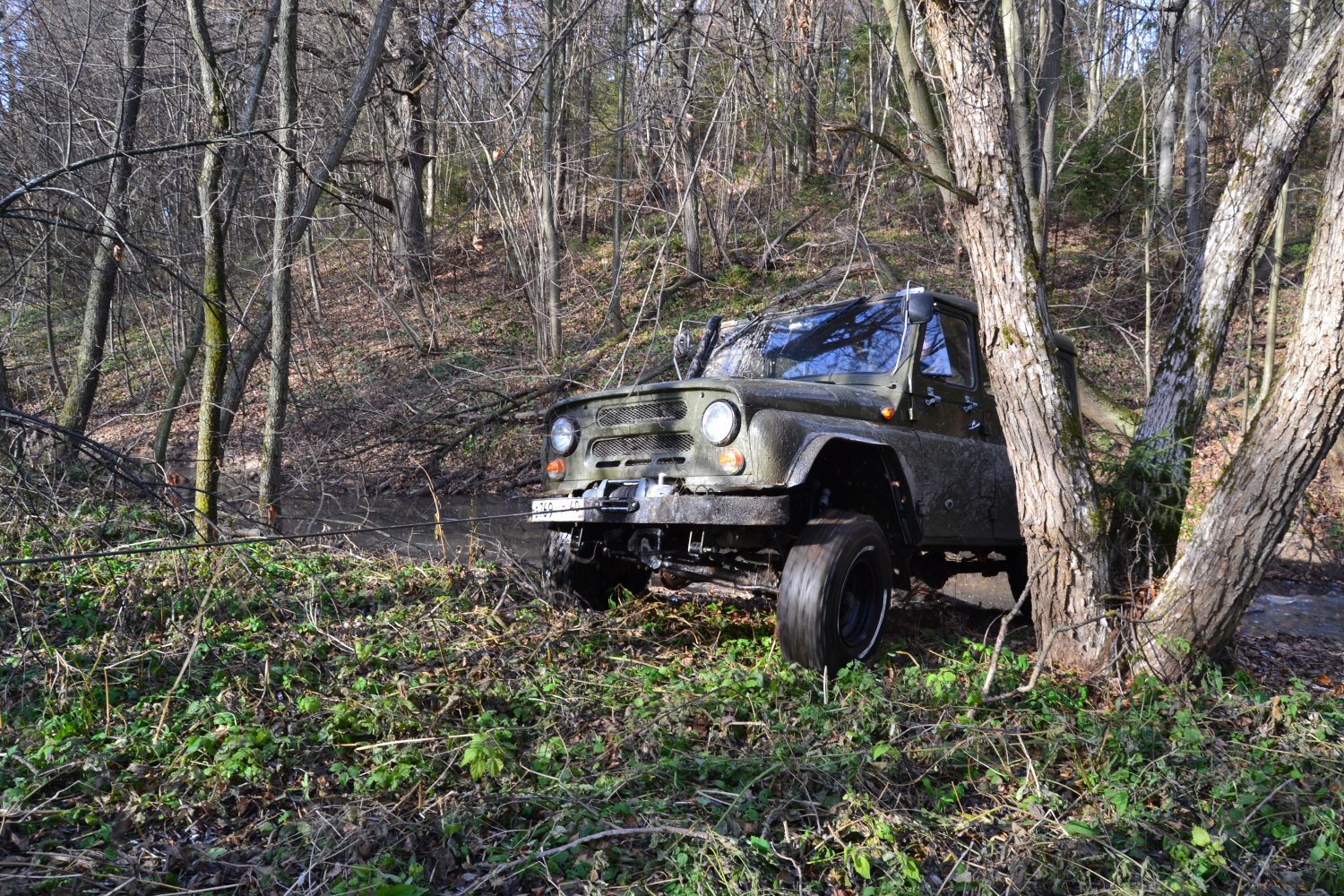 У знакомого на козле специально куча роликов натыкана, чтобы лебёдиться можно было в любую сторону, он даже брёвна на багажник лебедой затаскивает.