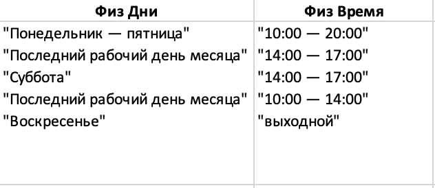 Правильно я понимаю, что нужно например в ячейку вносить информацию "Понедельник — пятница/Последний рабочий день месяца/Суббота..." а потом в индизайне заменить "/" на перевод строки?Не выйдет, насколько помню не поймет ID DM переводы строк в одной ячейке, нужно сделать свой разделитель и после вставки поиском заменой менять на перевод строки.