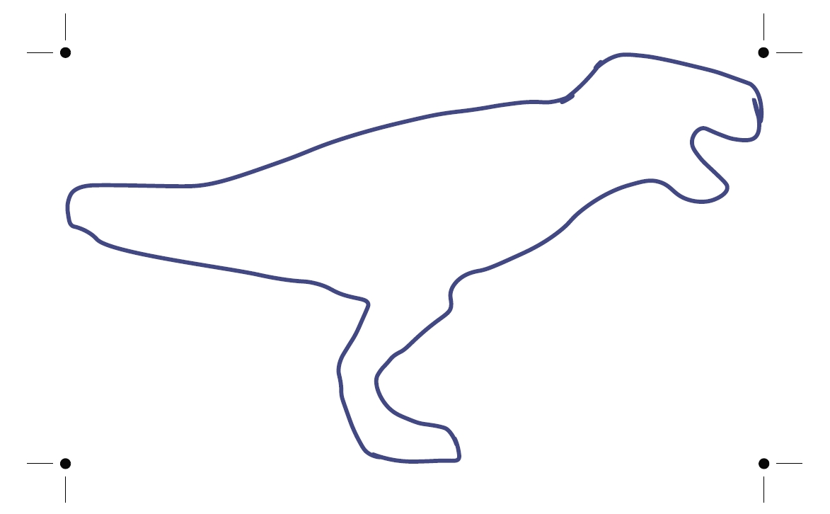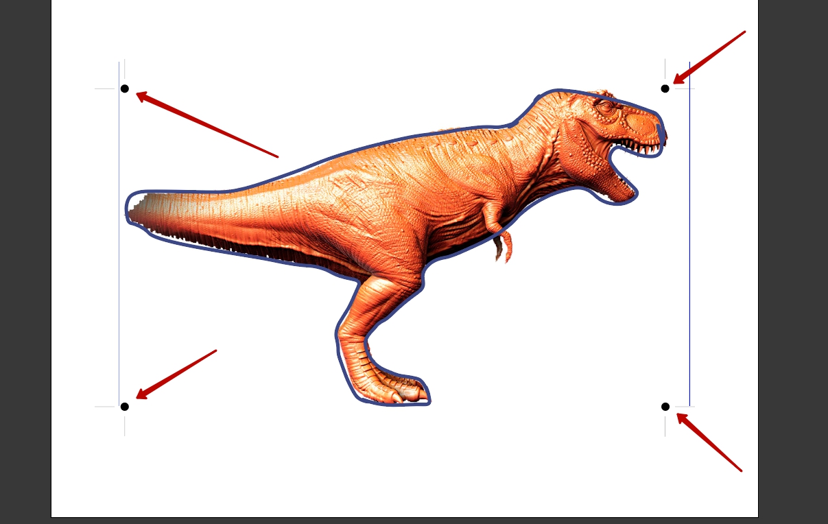 В печать — тиф с изображением и круглыми точками, в пэдээфе — контур реза + круглые точки. 4 точки на такое изображение крайне мало. И надо указать, откуда начинать рез. То есть поставить ещё одну.