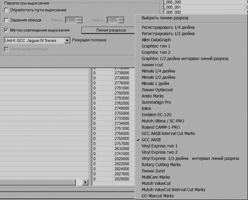 Метки реза у всех производителей разные. На Zund, если не ошибаюсь, могут сопровождаться штрих-кодом.