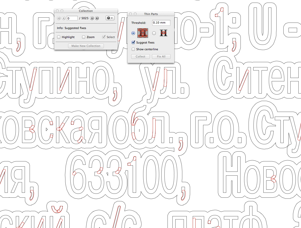 Если клише не гравируется, а экспонируется, то логично взять битовую карту после рипа и поискть в ней группы точек, шириной или высотой менее заданного.рипование, вывод форм и пленок