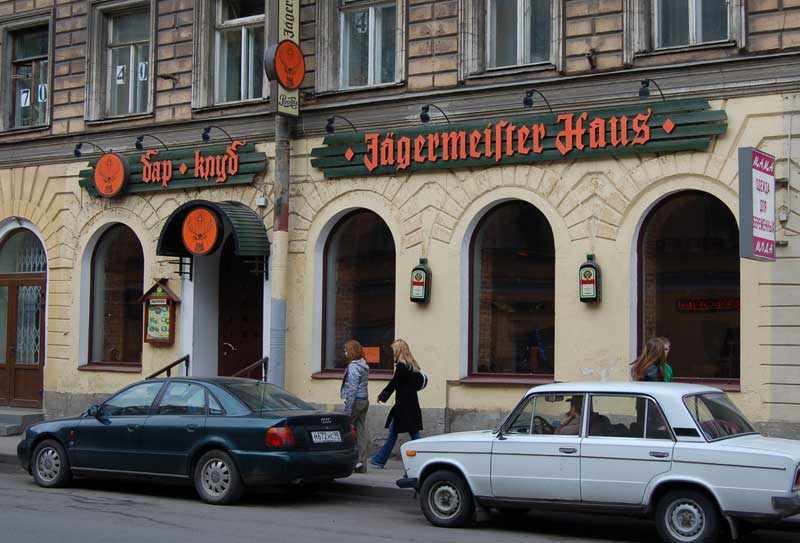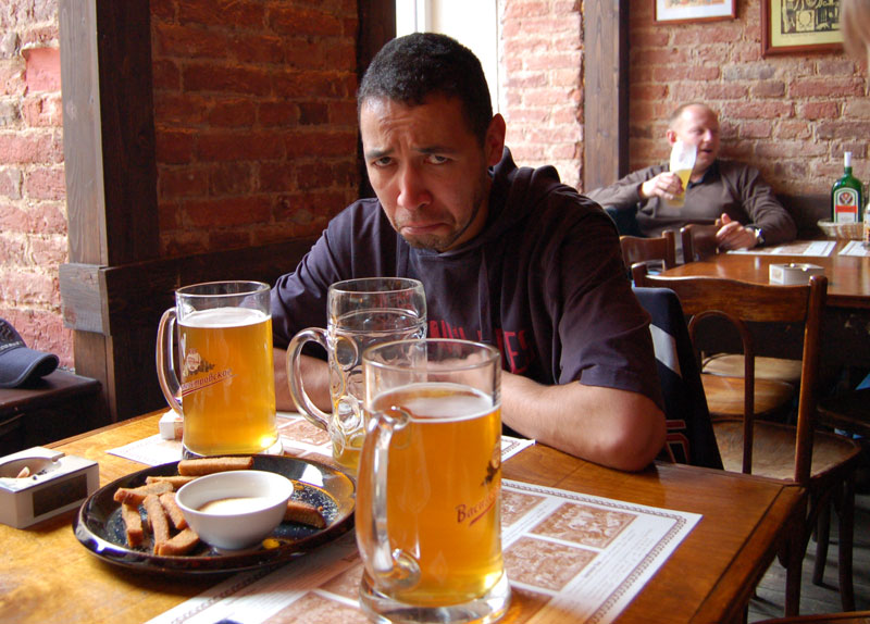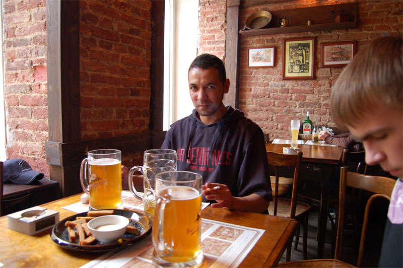 Мде... посидели отлично:) После этого заведения продолжили на улице. Зашли в какой-то магазин за пивом. К направились прямо к пиву, невзирая на то, что там висела железная цепь. Евгений, как мне кажется, её даже и незаметил, когда порвал:)