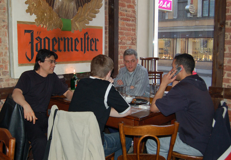 Были: я, Толик (funny1), Адель (Mr. Adel) и Евгений (Evgen). Что ж, это прогресс. В прошлый раз в прошлом году было три человека. Сейчас пришло четыре. Есть реальная надежда, что лет через 10 нас будет собитаться толпа в 10 чел!'%)'
