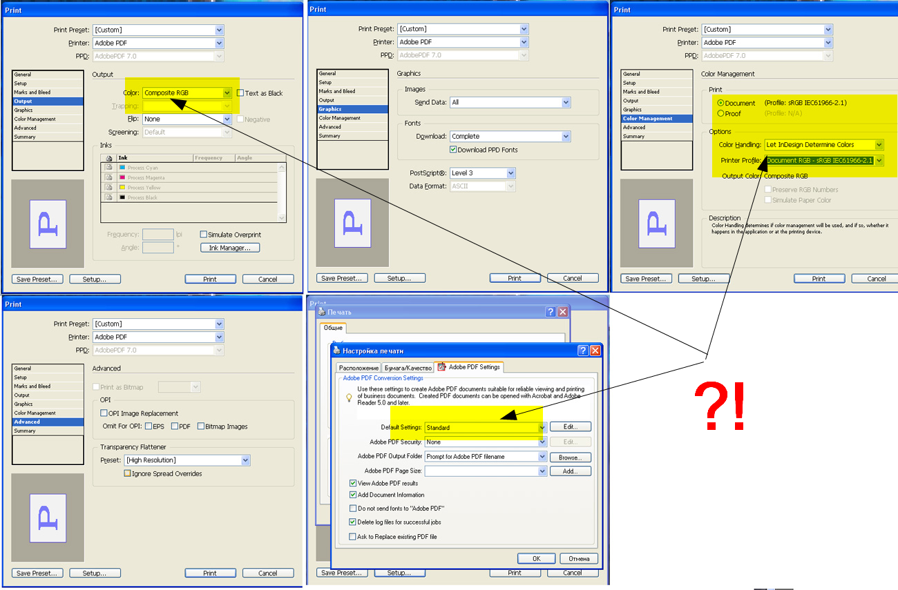 В макете (версия ЦС3) имеются фотографии, которые на данном этапе нужно защитить водными знаками. Поверх фотографий созданы надписи (переведены в кривые) с 20% прозрачностью и способом наложения Soft Light. При создании ПДФ - прозрачность изменяется и вокруг контура букв создается пиксельный белый контур.
