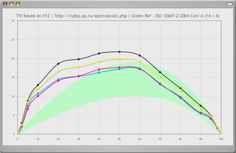 И тоже не было инструментов, кроме как кривые подкрутить в фотошоповских профилях, опираясь на показания какого-то архаического денситометра. Нас тоже пытались всякие лохи цветокоррекцию обвинить во всех бедах. Особенно внеохватные любили образцы принести и издеваться, что цветокорректоры балбесы не могут в образец попасть точно в печати...