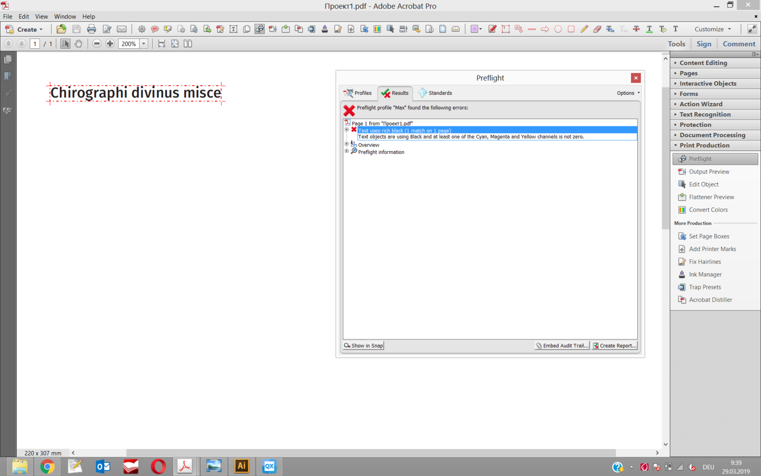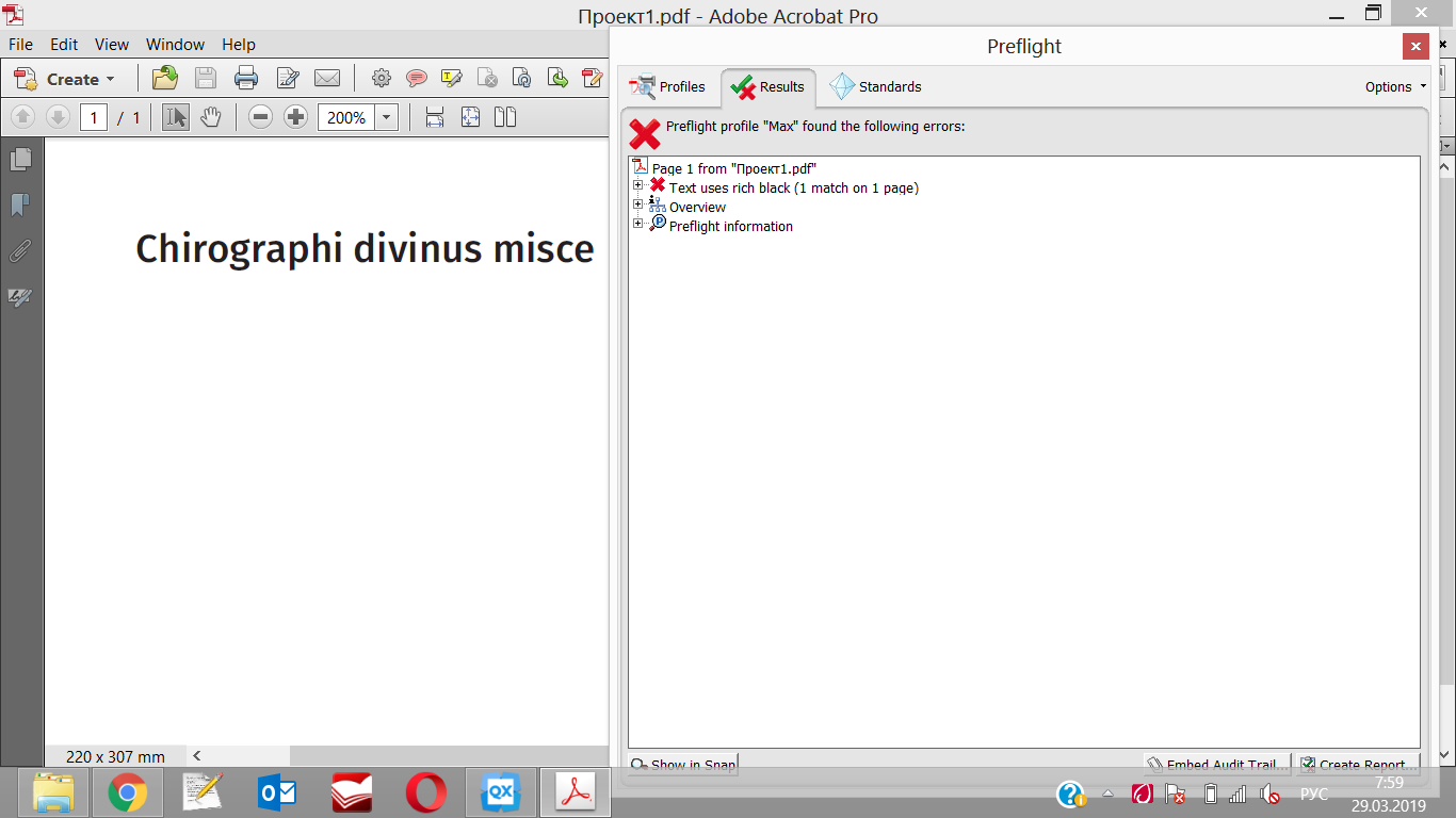 Всем добрый день! Очень нужна помощь. Quark 2018 выводит PDF, в котором обычный черный текст при проверке через Preflight в Акробате распознаётся как rich black. При этом в Output Preview черный цвет 100%, остальные 0. Настройки цвета в Quark 2018 по умолчанию. Перешёл на него с 2017, проблем не было никогда, в т.ч. на более ранних версиях. В настройках нигде ничего подобного не нашел. В Сети тоже ничего толкового нет. Может кто-то сталкивался, подскажите, что делать. Заранее благодарен за любые ответы