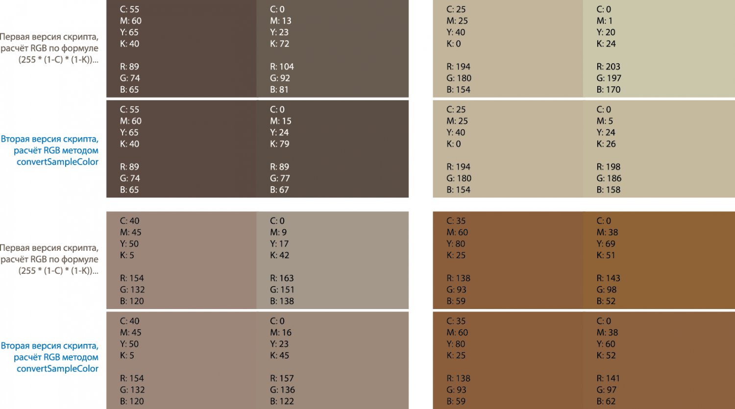 Отчасти, да. Это сэкономит вычисления по одной краске. Это вопрос оптимизации. Сколько это сэкономит времени? 1 секунду ? 1,5 ? Нашёл старую картинку для примера - там убирался циан (смотрите синие варианты):я кстати глянул скрипт на первой странице, это очень странная методика подбора цвета - конвертнуть исходный в lab, затем в исходном черный сделать 0 и дальше прибавлять краски по проценту. с похожим успехом можно и рандомно перебирать )