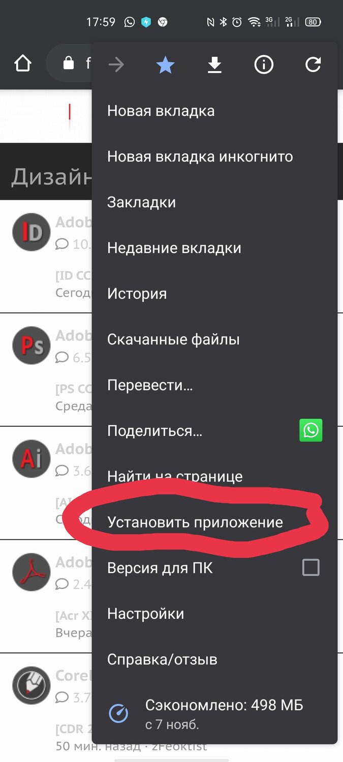 У меня в Хроме именно в этом месте "Добавить на главный экран"