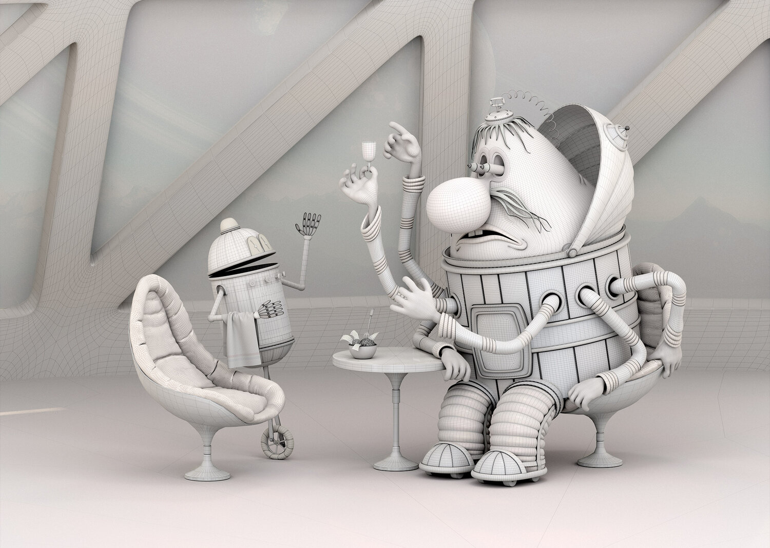 Отличный вышел, посуровее оригинала, но так даже интереснее. Только задн..., ну в общем, на чем сидит, ИМХО, поплющить немного надо, а то он над контрабасом (виолончелью) как будто зависАх, да! Carry, спасибо за напоминание. нельзя не упомянуть, не было никакой идейки =) Просто увидел картиночку в инете некоего Adrian Borda и решил, а почему бы и не попробовать замоделить такого вот персонажа, усадить его в достаточно сложную позу и т.д., нужно же на чём-то тренироваться... Вот и. Ну, а когда замоделил тулово, решил, что просто на белом фоне скучнова-то и понеслось=)