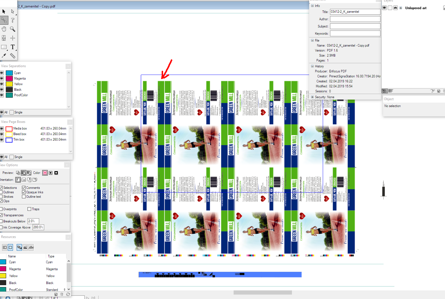 Output Plan в данном случае общий для входящего pdf сделанного из Сигны, и для монтажа, который забрасывается напрямую на Meta. Только в случае pdf непрерывный растр, а во втором сдвигВ Сигне задается какой-то свой Output Plan, которым руководствуется Мета? Имеет смысл поискать отличия между "хорошими" настройками и теми, которые пришли из Сигны.