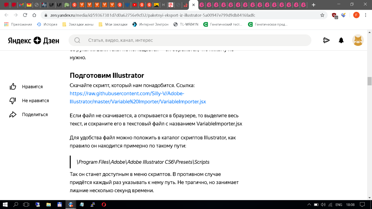 А у всех на последних версиях иллюстратора скрипт некорректно работает? При нажатии на кнопку import variables выдает ошибку "Sorry, something went wrong with the import of the generated XML file. Possible problem: Importing Variables into the document from created XML file." Может кто-нибудь уже с таким сталкивался и может подсказать решение? Спасибо