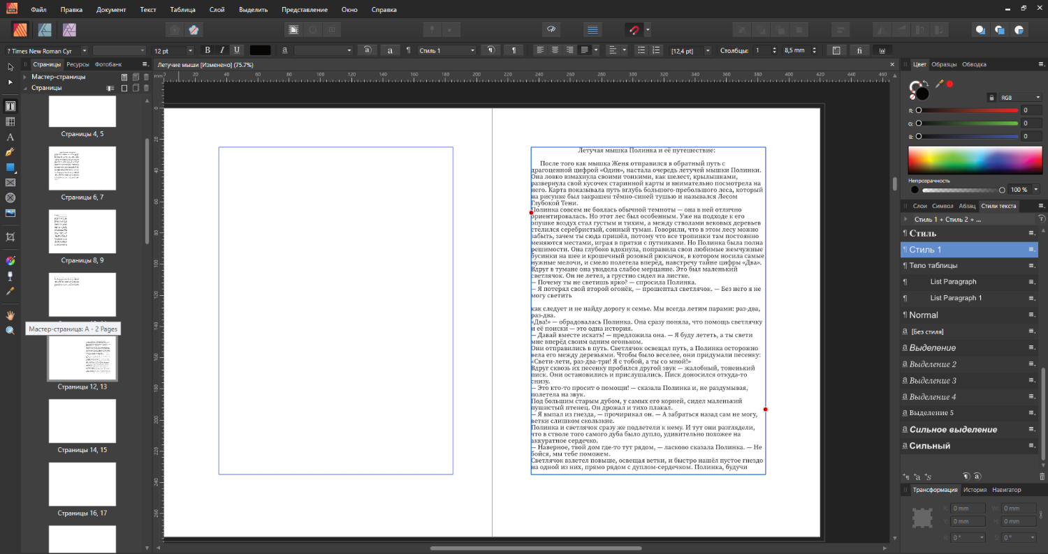 Извините, пожалуйста, если мой вопрос специалистам покажется наивным, но я никак не разберусь как в Affinity Publishers можно выровнять текстовую полосу по обеим краям равномерно. Какую бы выключку я не делал в некоторых строчках одно или два-три слова растягиваются во всю строку.