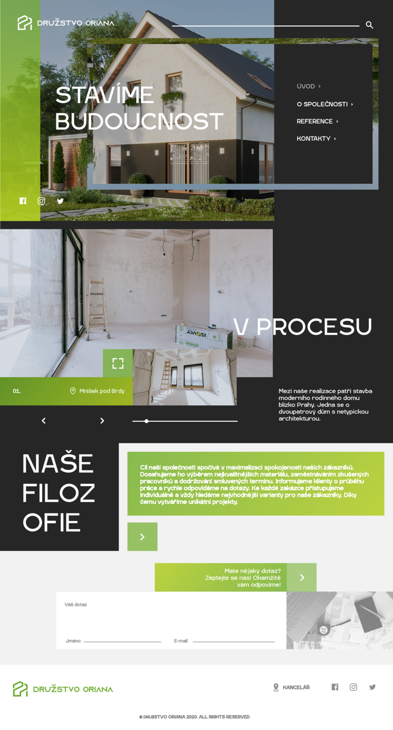 Есть макет главной страницы (сейчас рассматриваем верхнюю часть). Есть картинка на которой изображён дом. Справа серое пространство, слева зелёное, и поверх картинки наложена какая-то рамка. Мое понимание таково: взять картинку с домом, с помощью Фотошоп справа и слева наложить соответсвующие слои, и то же самое с рамкой. Поместить получившееся изображение как фон секции, далее поверх этой картинки разместить меню и другие виджеты итд.